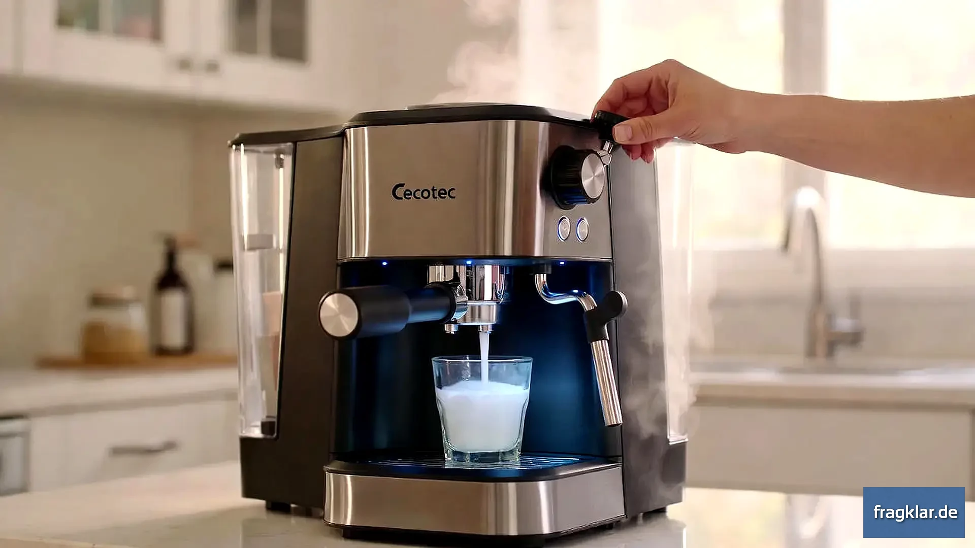 Fazit: Wenn die Cecotec brummt aber nicht liefert: Dampfhahn aufdrehen und Wasser dort durchjagen ("Entlüften"). Wenn sie wild blinkt: Drehregler an der Seite zudrehen.